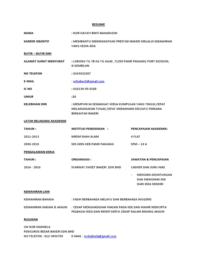 Contoh Resume Terbaik Lengkap Bahasa Melayu Resume Sample Resume Sample Resume Format